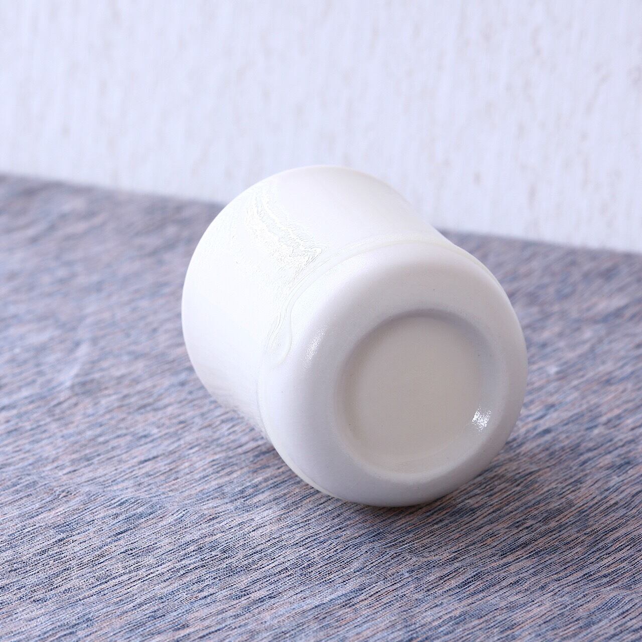 一つ一つ釉薬の雫の形が違う白い磁器のカップです。