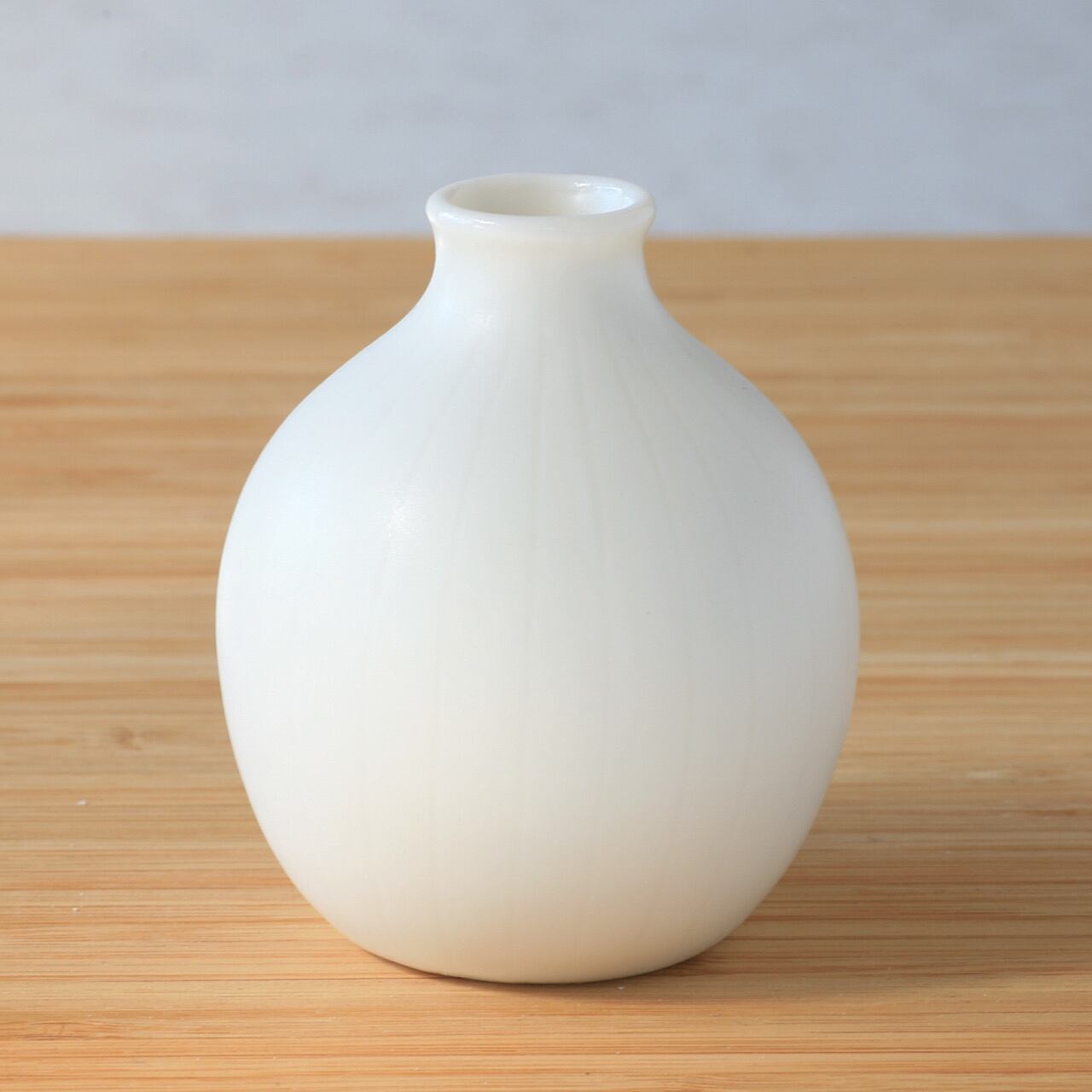 しっとりとした質感で、柔らかい印象の白い磁器の一輪挿しです。