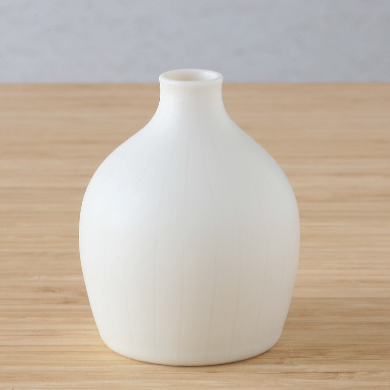 しっとりとした質感で、柔らかい印象の白い磁器の一輪挿しです。