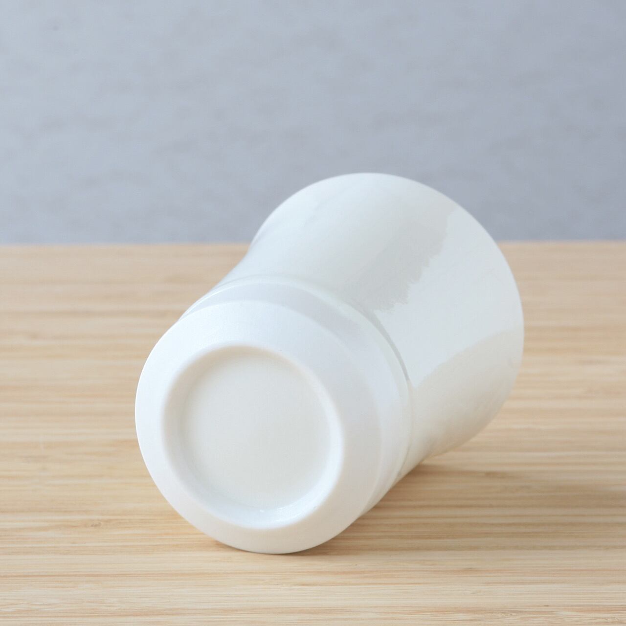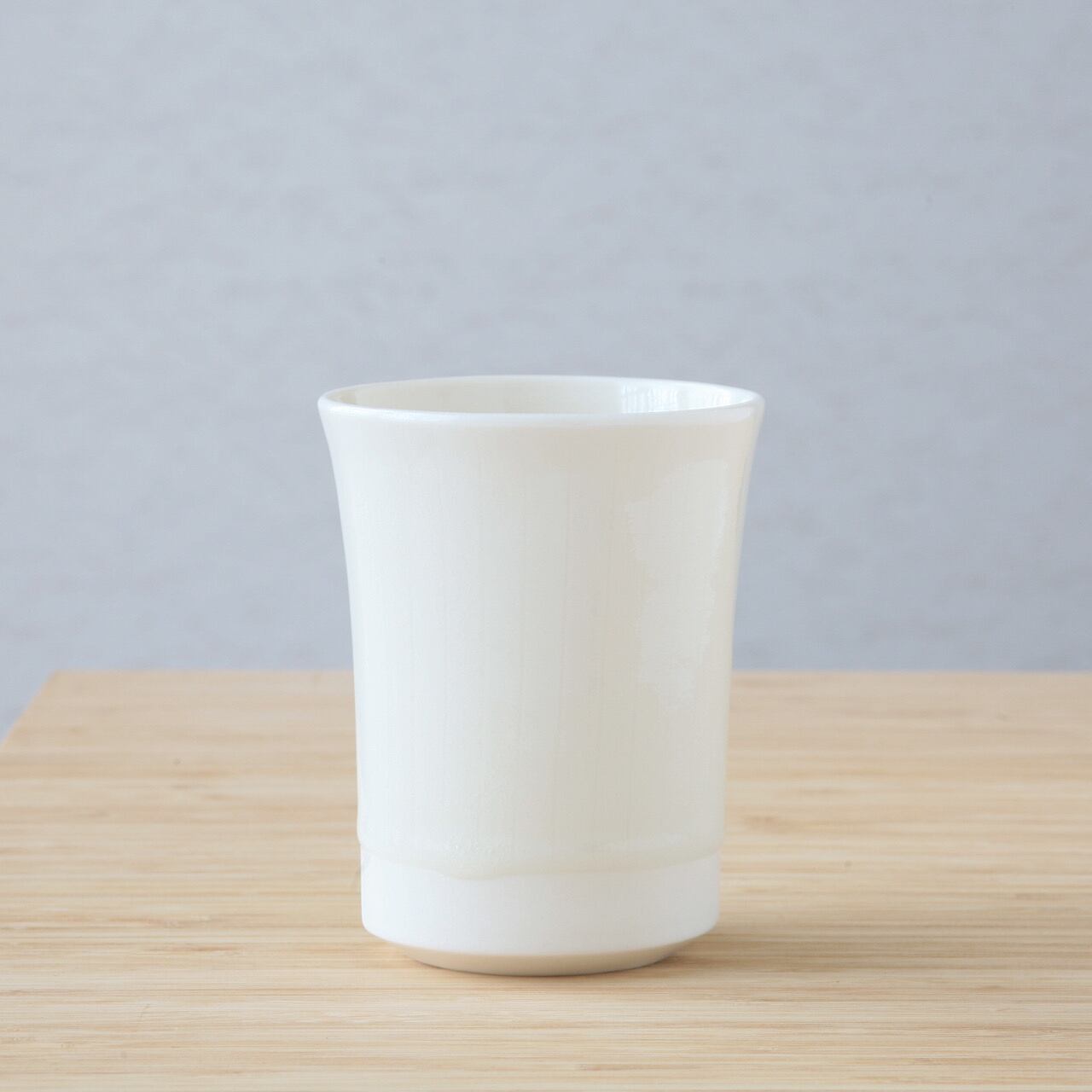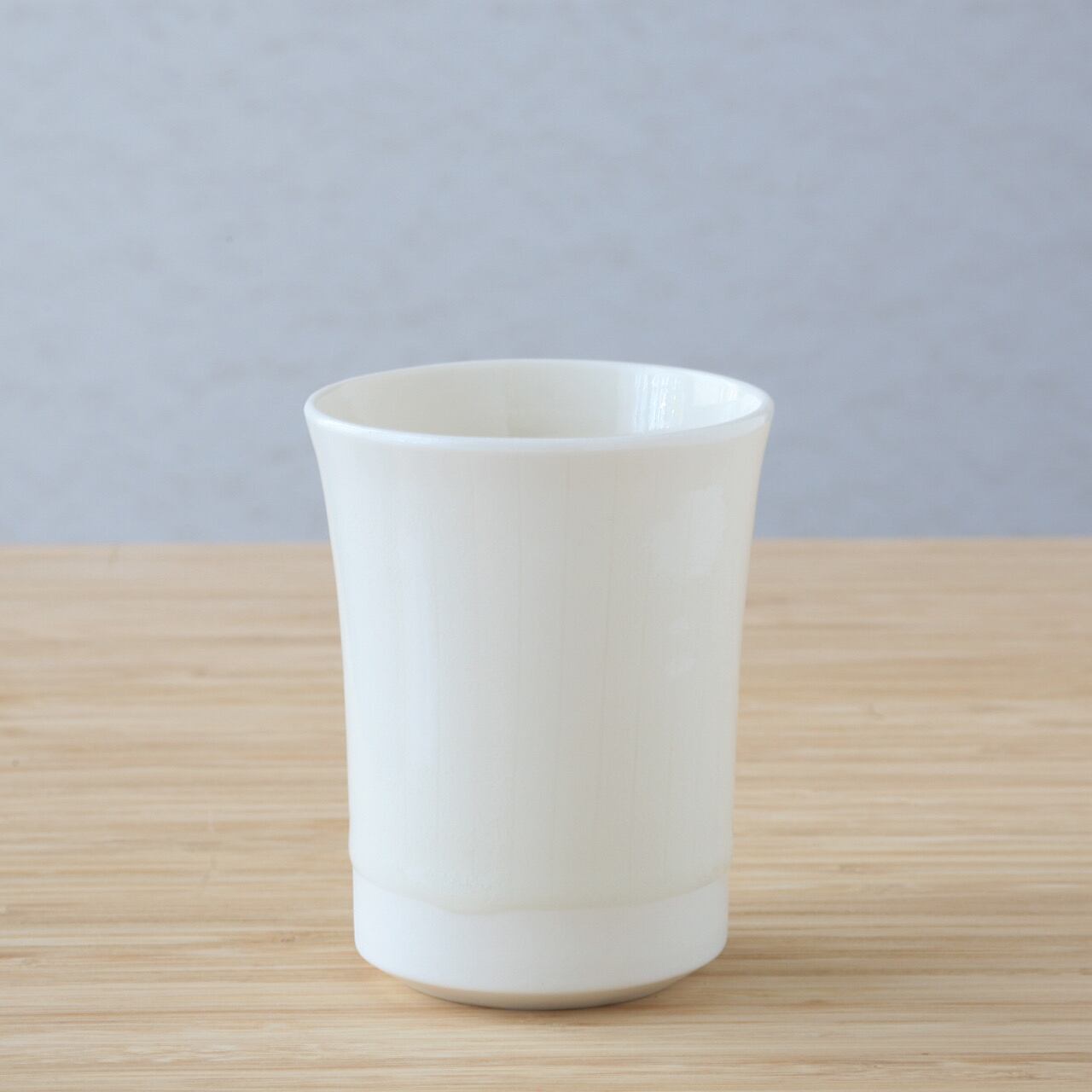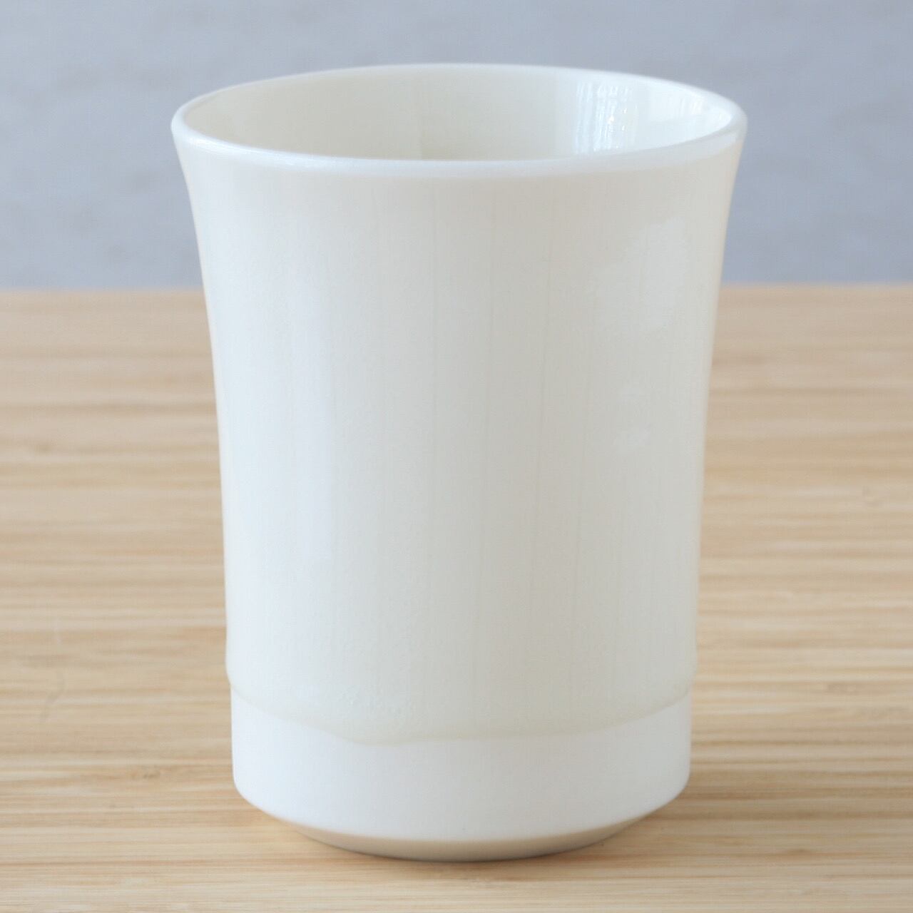 一つ一つ釉薬の雫の形が違つ白い磁器のフリーカップです。