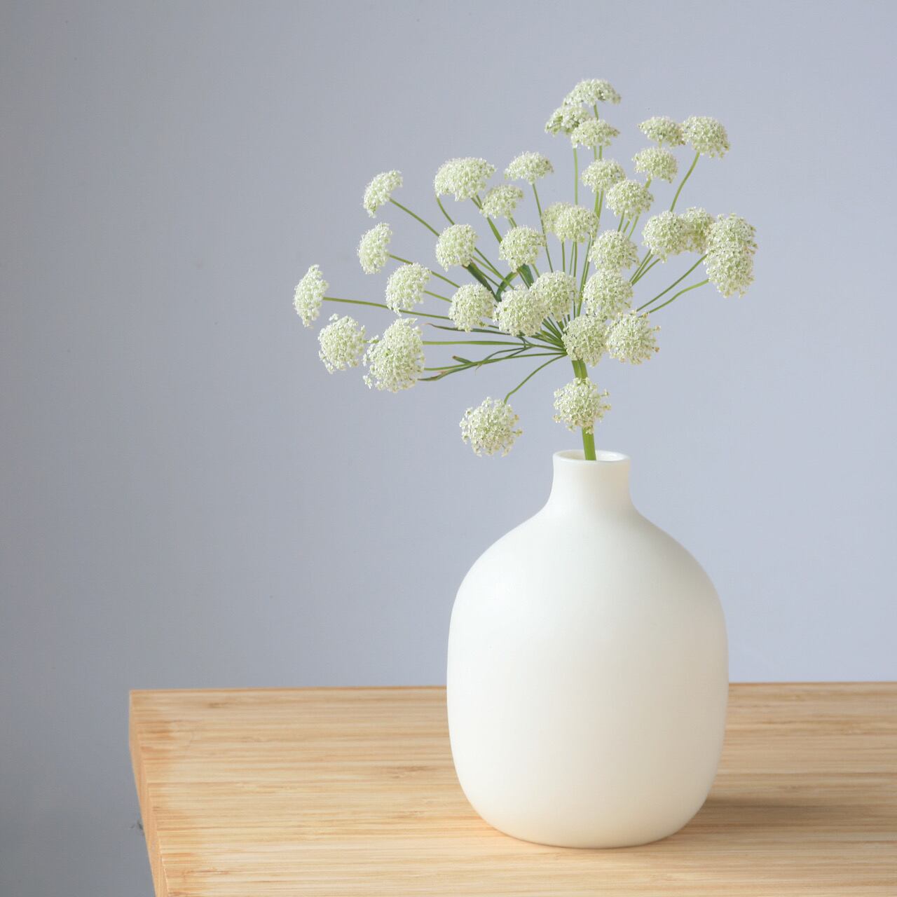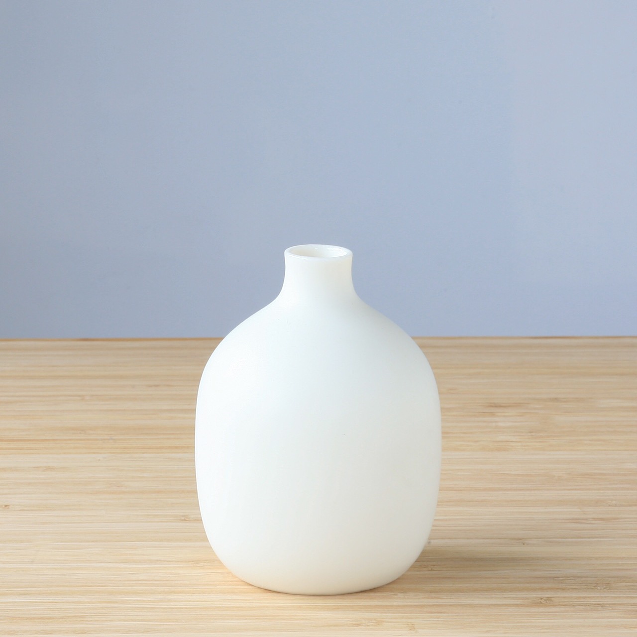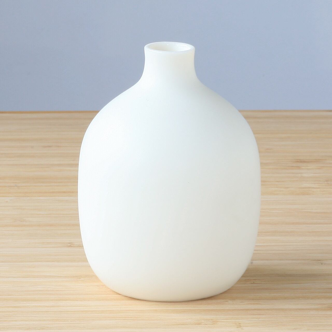しっとりとした質感で、柔らかい印象の白い磁器の一輪挿しです。