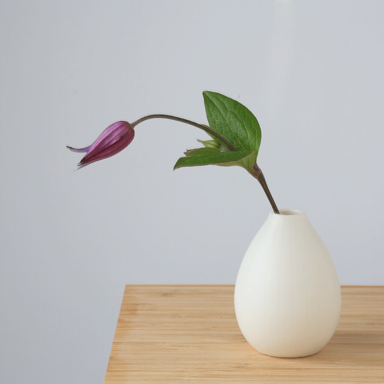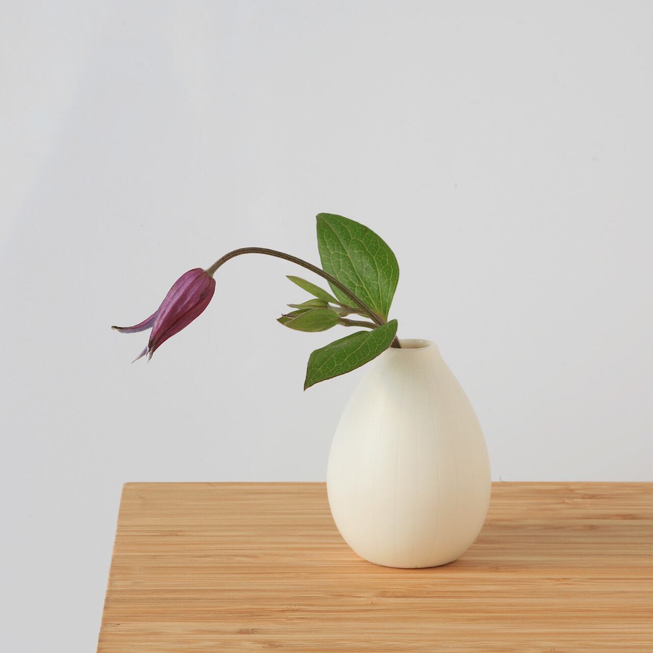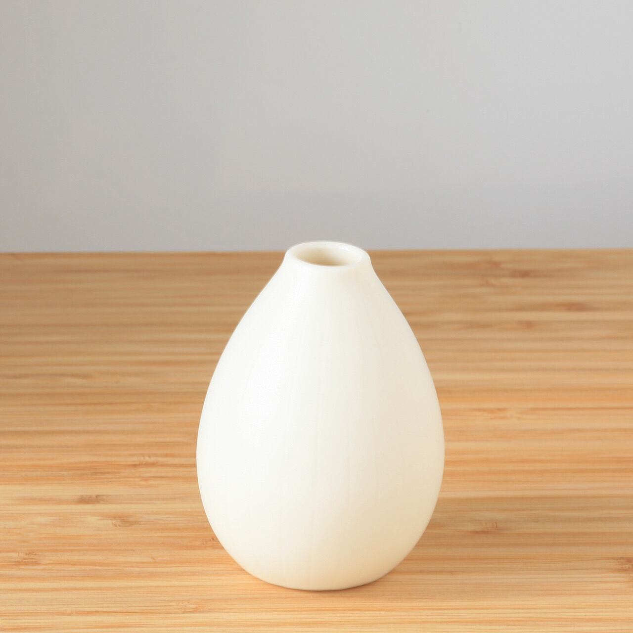 しっとりとした質感で、柔らかい印象の白い磁器の一輪挿しです。