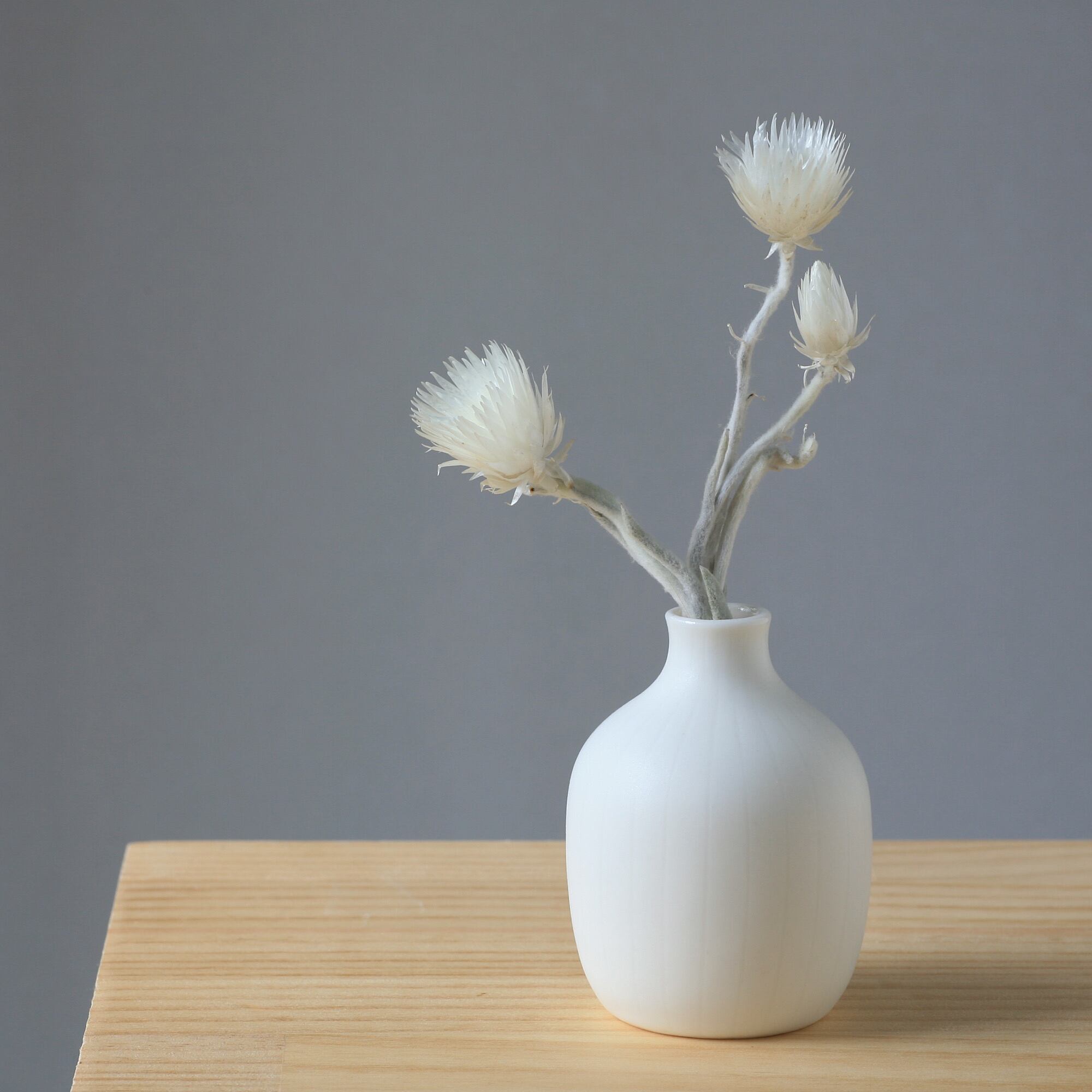 シンプルなデザインとマットな質感が魅力の花器です。洗練された雰囲気を演出する白磁の質感は、どんなお部屋にも調和し、お花を美しく引き立ててくれます。一輪挿しとしてはもちろん、小さなお気に入りの植物を飾るのにも最適です。お部屋のアクセントとして、またギフトとしても喜ばれる逸品です。